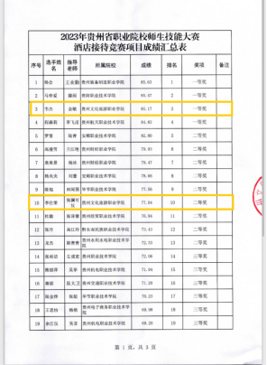 4月12日至4月13日,2023年贵州省职业院校师生技能大赛(高职组)酒店接待赛项在贵州文化旅游职业学院举办。全省22所院校共44名参赛选手同台竞技,经过激烈角逐,我院酒店管理系2021级旅游管理2班韦杰荣获2023年贵州省职业院校师生技能大赛(高职组)酒店接待赛项一等奖,指导教师金敏;酒店管理系2022级酒店管理与数字化运营1班李仕荣荣获2023年贵州省职业院校师生技能大赛(高职组)酒店接待赛项二等奖,指导教师张澜可仪。