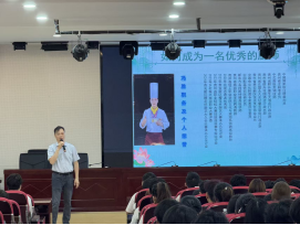 同日,烹饪工艺与营养专业、中西面点工艺专业在教学楼阶梯教室举办新生专业认知教育活动,活动由烹饪专业教研室主任周星主持,2025级全体新生及专业教师参加。本次活动特别邀请了行业行政总厨冯胜和我院优秀毕业生胡素涛围绕学习路径与行业前景展开深度分享,冯胜以《新时代烹饪人才的核心素养》为题,从“技艺、创新、文化”三个维度解析行业需求,2021级烹饪工艺与营养专业优秀毕业生现知名酒楼研发总监胡素涛则以《烹饪工艺的五年:从学徒到研发者》为题分享个人成长路径。活动尾声,新生代表表示嘉宾的分享让自己看到了专业的无限可能,未来将以“每日精进”的态度投入学习,力争交出一份满意的“职业答卷”,周星总结指出本次新生专业认知教育活动通过“行业领航+校友示范”双维度,帮助新生构建起了“专业认知—职业规划—能力提升”的清晰路径。
