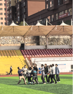在民族传统体育展示环节,极具特色的抢花炮、抵杠、押加等民族传统体育项目依次登场。同学们积极参与,在欢快的节奏中感受民族传统体育的独特乐趣和深厚内涵。特别是在押加环节,大家齐心协力、全力以赴,现场气氛热烈,欢呼声、掌声此起彼伏。