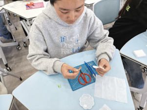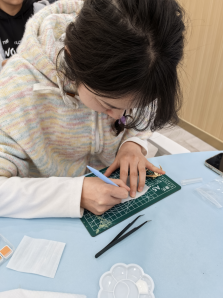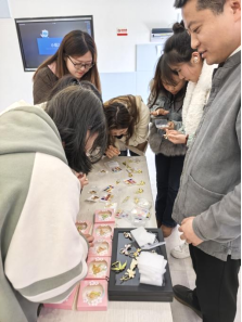 在非遗通草胸针制作体验活动现场,气氛热烈而温馨。通草画作为一项具有深厚历史底蕴的非遗技艺,以其独特的艺术风格和精湛的制作工艺吸引了众多同学报名参加。通过对通草画的起源、发展历程以及制作工艺的了解,同学们充分发挥自己的创造力和想象力,将原本普通的通草纸变成了一件件精美的胸针作品。同学们兴奋地表示:“以前只是在博物馆里欣赏通草画,这次能亲手制作通草胸针,才真正感受到这项非遗技艺的魅力。”