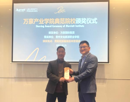 由万豪国际集团大中华区校企关系部门牵头,联合集团旗下375家运营酒店开展的"万豪国际集团校企合作院校奖项评选”中,贵州文化旅游职业学院从全国12所万豪产业学院共建院校中脱颖而出,荣膺"2024-2025年度万豪产业学院典范院校”。这一奖项充分展示了贵州文化旅游职业学院在新时代教育背景下,主动积极携手行业,与万豪国际集团及旗下相关地区酒店在深耕产教融合,赋能校企合作,创新建设产业学院方面的典范形象。3月20日,学院党委书记梅松,酒店管理系主任钟磊,酒店管理系实习工作负责教师郑志杰、付爽出席颁奖仪式。