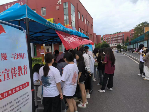 活动通过设立展架,向全体学生发放“以法为规,与法同行”的法律知识宣传资料进行普法教育宣传。为提高学生参与的积极性,活动中还特别设计了民法知识问答环节,回答正确的同学即可领取小礼品一份,最大程度的激发了同学们参与普法学习的兴趣。