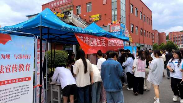 为深入学习贯彻党的二十大精神,加强学习宣传贯彻习近平法治思想,深刻领悟“两个确立”的决定性意义,增强“四个意识”、坚定“四个自信”、做到“两个维护”,让民法典走到师生身边。我院酒店管理系党支部于2024年5月20日在学院食堂旁组织开展了主题为“以法为规,与法同行”的普法教育宣传活动。