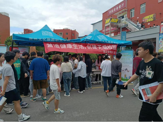 为深入学习贯彻党的二十大精神,呼吁我院师生远离香烟,宣传及普及吸烟有害健康的常识。创建无烟校园,为广大师生营造一个无烟、清洁健康的学习、工作和生活环境。旅游管理系党支部特举办此次活动。我院旅游管理系党支部于2023年11月2日“携手禁烟,共创无烟校园”教育宣传活动。酒店管理系党支部于2024年5月20日在学院食堂旁组织开展了主题为“携手禁烟,共创无烟校园”宣传教育活动。