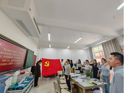 活动伊始,党支部书记臧诗茜与全体党员重温了习近平总书记关于伟大建党精神重要论述,随后带领全体党员同志举起右手,面对党旗重温入党誓词。最后,全体党员集体观看了电影《建党伟业》和纪录片《百年“纪”忆——中国共产党纪律建设百年回眸》。