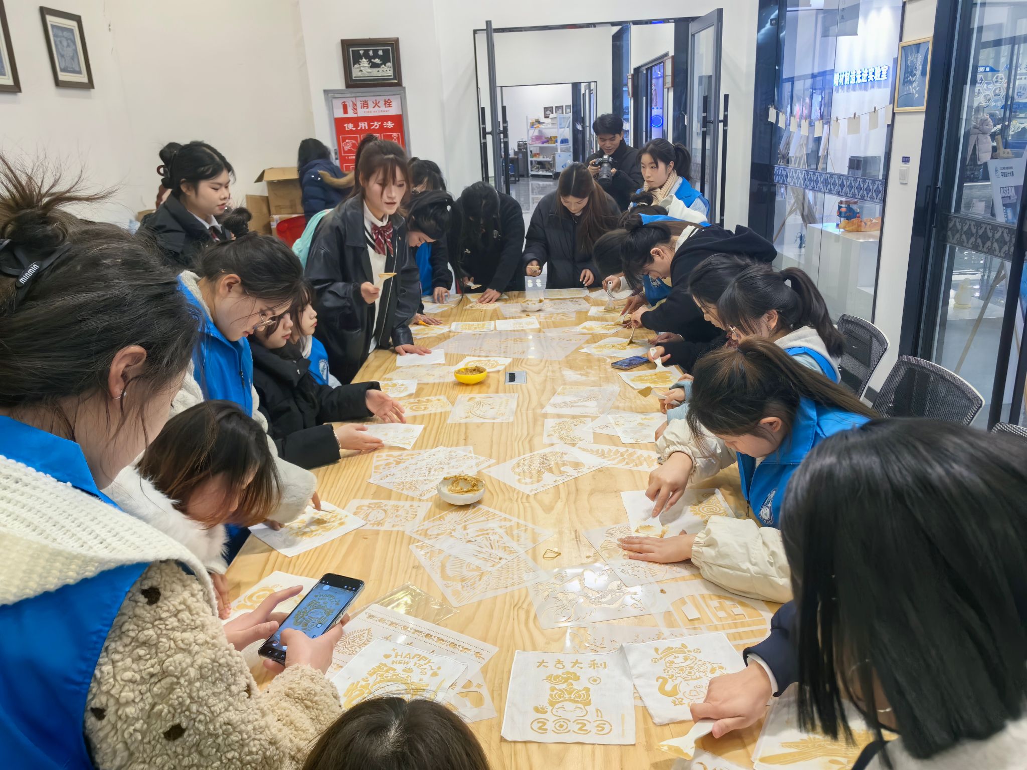 在传统手工艺豆染区域,技艺传承人演示了豆染制作的核心工艺,同学们现场学习豆染的历史渊源、文化内涵、技艺特点等多个方面,同时还开启了豆染创作体验之旅,真切感受到了非遗豆染的魅力和乐趣。通过亲手参与非遗项目实践,学生们深刻体会到传统工艺精益求精的工匠精神,增强了保护与传承非物质文化遗产的责任意识。