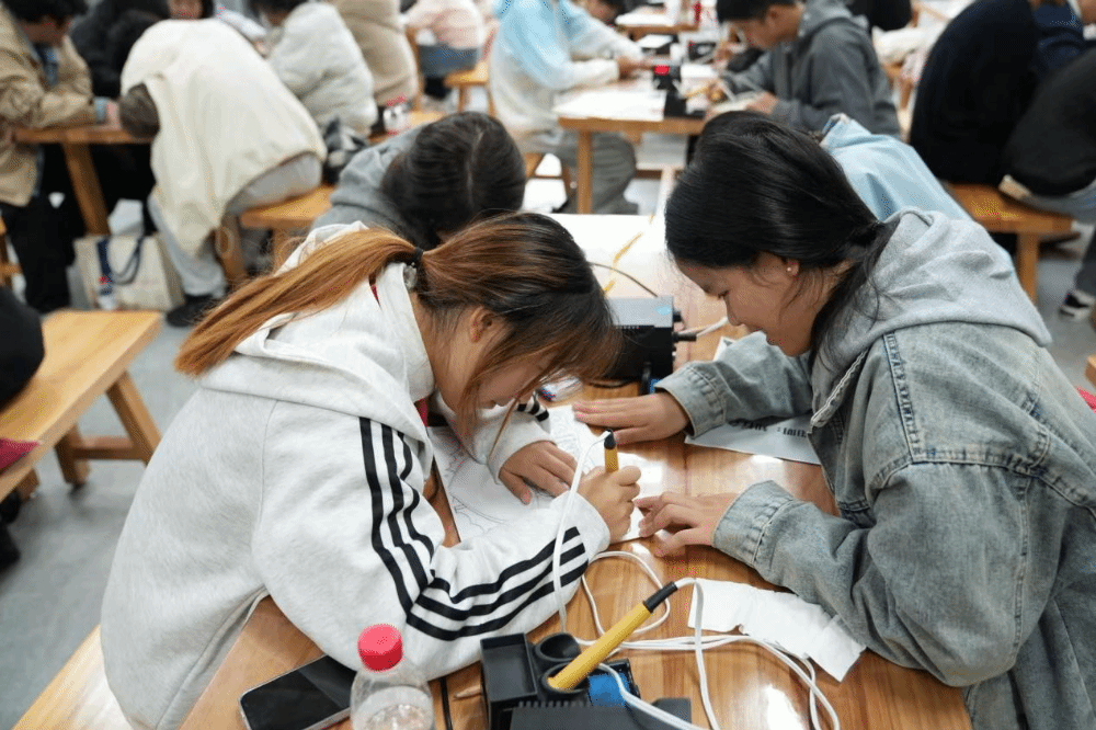 10月29日,贵州文化旅游职业学院马克思主义教学部组织师生50余人走进贵州工业职业技术学院实践育人基地,开展主题为“传孝道美德 育时代新人”实践教学活动,让学生在非遗烙铁技艺的沉浸式体验中,感受传统技艺的新奇、体悟传统文化的魅力,进而深化对中华传统美德的理解。
