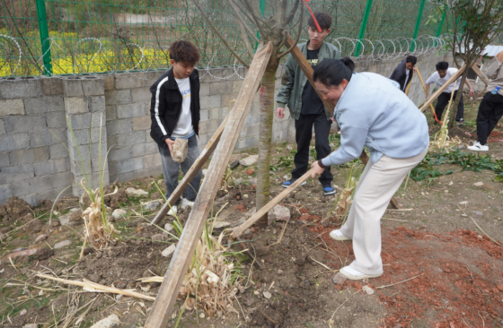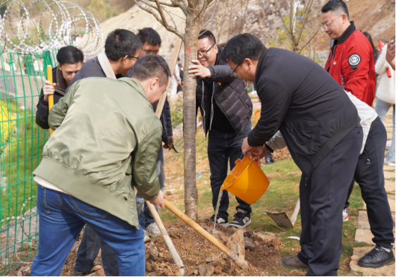 活动现场,学院师生团结合作、相互配合,挖坑、铲土、扶苗、填土、浇水等一系列植树环节井然有序地进行,呈现出一片热火朝天、干劲十足的劳动景象。一棵棵树苗迎风挺立,焕发出勃勃生机,形成了一道靓丽的风景线。此次植树节活动充分继承和弘扬了党的优良传统和作风,加强了学院师生之间的团结合作,务实创新,增强了学院师生之间的凝聚力和战斗力,在广大学生心中种下了一片“信念坚定”的树苗,以实际行动保护生态环境,为建设美丽家园贡献自己的力量。