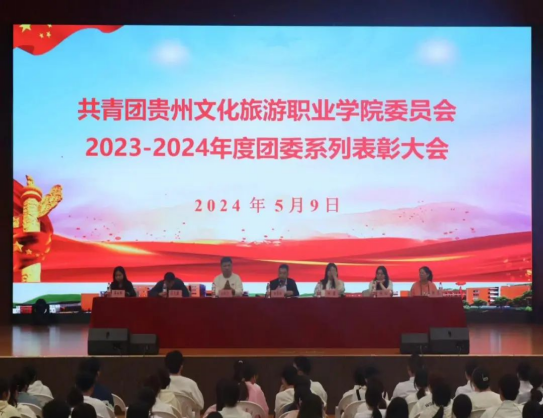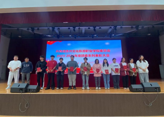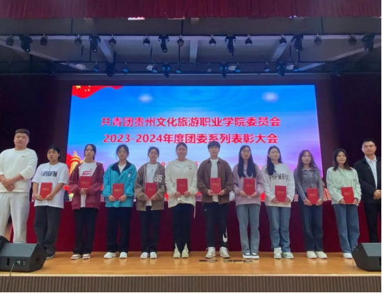 随后,学院团委组织开展了2023-2024年度团委系列活动表彰大会。分别对学院2023-2024年度团委优秀学生干部、清镇市武术协会2023年度优秀学生会员、2024年度高职分类招生考试优秀学生志愿者、学院传统芦笙表演“优秀演艺工作者”,学院“红色家园·视频展览”创作比赛活动、“水墨校园·会话联播”比赛活动、庆祝中华人民共和国成立75周年“礼赞新中国·展现新变化”校园书画比赛活动等近10个奖项进行了集中表彰。