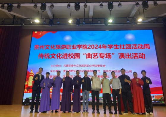传统文化进校园——曲艺专场演出活动是在学院党委的坚强领导下,深入落实学院党建带团建工作,深入落实传统文化进校园,此次活动不仅为同学们带来了一场艺术的饕餮盛宴,更重要的是在同学们心中种下了传统文化的种子。通过近距离体验和学习,同学们对中华传统文化有了更深的理解和热爱。接下来,贵州文化旅游职业学院团委还将继续深入推进传统文化、非遗文化、红色革命文化进校园工作,不断夯实教育文化内涵建设,让更多学生在文化熏陶中成长,为传承和弘扬中华优秀传统文化贡献青春力量。