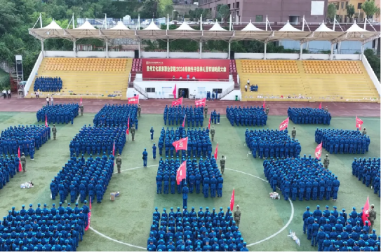 8月31日,初秋的晨曦温柔地洒满校园,学院迎来了一年一度的新生开学典礼暨军训动员大会。学院领导班子成员、相关职能部门负责人、承训教官、全体辅导员及全体2024级参训学生参加大会。清镇校区和南校区同步进行,分别由党委委员、副院长袁曜,党委委员、副院长潘绍望主持。
