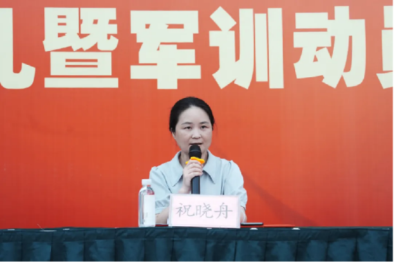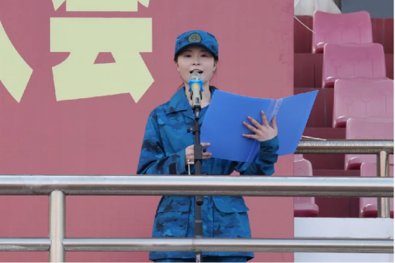 教师代表发言,她们代表学院全体教师,向刚踏入校园的新同学们表示热烈的祝贺。希望同学们珍惜大学时光,努力学习,不断提升自我,在挑战中成长,在困难中坚持,在汗水中收获,在训练场上展现亮丽的青春风采。志存高远,脚踏实地,三年后再回首来时路,你可以告诉自己无悔青春!