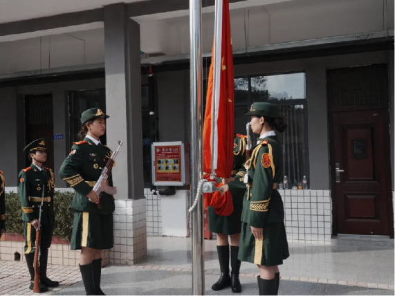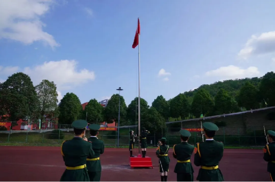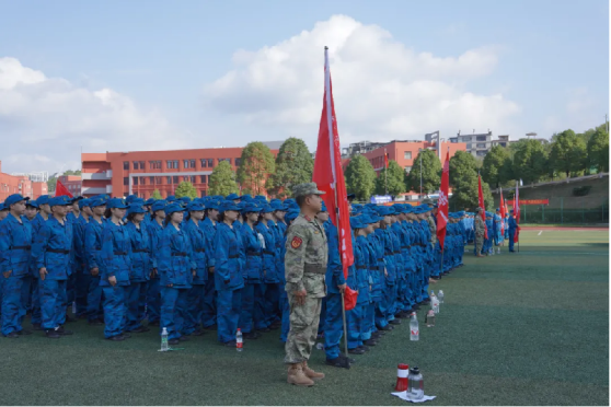 新生开学典礼暨军训动员大会在雄壮的国歌声中正式拉开帷幕。全校师生肃立,注视着五星红旗冉冉升起,心中充满对祖国的无限热爱和崇高敬意。