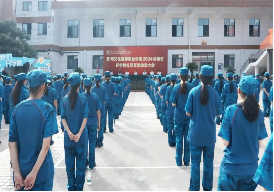 学校领导宣布军训开训命令,军训生活正式拉开帷幕。在接下来的日子里,同学们将在教官的带领下,接受严格的军事训练,锤炼意志品质,培养爱国情怀和集体主义精神。相信在全体师生的共同努力下,贵州文化旅游职业学院军训工作一定会取得更加优异的成绩,为培养更多具有爱国情怀、创新精神和实践能力的新时代大学生贡献力量。