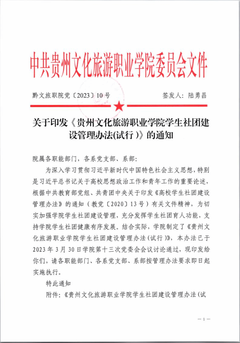 附件1:共青团贵州文化旅游职业学院委员会学生社团申请成立审批表。