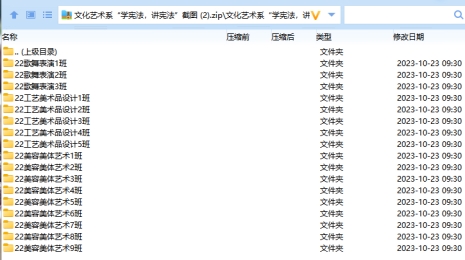 2023年10月17日,为深入贯彻习近平总书记全面依法治国的新理念、新思想、新战略,引导广大青少年牢固树立尊法、学法、守法、用法的意识,文化艺术系党支部接相关通知组织系部全体学生开展“学宪法,讲宪法”线上答题活动,其中22级学生578人,23级学生449人,经核查本系学生答题率达100%。