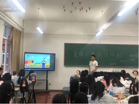 在活动中,为了进一步加强同学们眼健康科学知识的宣传普及,增强重视眼健康的意识,营造爱眼护眼的宣传教育氛围。6月6日,通过“学生讲堂”的形式进行“爱眼日”的宣传,宣讲同学们细心地为大家讲解眼部健康知识,帮助其他同学掌握科学用眼、卫生用眼,对预防近视有进一步的了解。