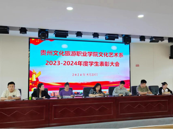 为表彰优秀,鼓励进步,传承榜样力量,营造浓厚的学习氛围,2024年5月23日,我院文化艺术系在阶梯教室举行2023--2024年度学生表彰大会。参加本次活动的领导有:文化艺术系党支部书记杨凌老师;文化艺术系歌舞表演专业负责人庞博老师;文化艺术系团总支负责人陈兰老师;文化艺术系工艺美术专业负责人石应辉老师;文化艺术系专业教师李菁老师;文化艺术系党专业教室孙敬尧老师和文化艺术系全体学生代表、获奖学生。