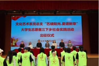 2025年5月19日中午12:30,于学校体育馆开展了活动的出征仪式,出席仪式的有学院党委副书记、院长祝晓舟、校团委书记刘贤雨、文化艺术系党总支书记杨凌、团委书记陈兰。