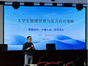 为帮助同学们认识情绪,提高对自己情绪的重视程度,以及普及大学生心理健康知识,引导大学生树立心理健康观念与意识,进一步地促进大学生健康的心理成长,营造良好的身心健康观念。6月6日,由学院组织开展“我爱我 心理健康团辅课”——大学生情绪管理与压力应对策略专题培训活动。本次活动邀请到贵州师范大学心理学院院长,中国心理学会脑电相关技术专业委员会委员,心理学博士罗禹教授为学院学生开展专题培训。