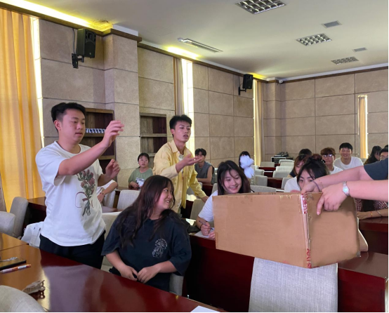 理论培训后开展团辅游戏环节,此环节共设置两个游戏,快乐动物园和心情纸团。快乐动物园是由两人为一组,按照提前分配好的个人姓氏首字母对应的动物,模拟动物叫声面对面互相交流10秒钟。心情纸团是要求同学们以匿名的形式在纸上写下自己难忘或者感触最深的事情,然后将纸团成团统一放入提前准备的“盲盒”箱里,打乱顺序后再随机发放并分享交流。通过这种方式,可以增强彼此之间的信任和合作,增加亲密感,匿名纸团的分享既达到了倾诉疗愈的作用同时也保护了个人隐私。