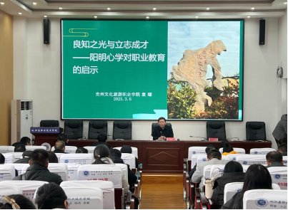 交流期间,袁曜应邀作题为《良知之光与立志成才——阳明心学对职业教育的启示》的专题讲座。在讲座中,他结合自己多年的研究实践,分别以阳明心学“致良知”“知行合一”“心即理”等核心理念为理论根基,从三个方面论述了如何以阳明心学为切入点,提升职业教育的价值自信及文化自信。一是在立足现实方面,职教在全面提高学生专业技能的同时,还应唤醒本有的“大我之心”,始终不忘初心,向上向善。可紧扣未来发展的人才需求,扎实开展“立志成才,强国有我”工程,师生志存高远,点亮心灯,真正觉醒,至诚报国,从而坚定职教的价值自信。二是在育人模式方面,践行“技能筑基、大我铸魂”的双元育人模式,建立“心性 - 技能”双元评价体系,关注学生生命成长与技能提升。三是在教师发展方面,切实实施五维“心镜评估法”、五个一“致良知”实践工程,全面提升教育质量,坚定职教文化自信。讲座中,袁曜通过剖析“民族技艺传承工作坊”等课程实践案例,深入阐释“从车间到田野”的场景化教学模式。袁曜以“教育者当为心性考古者”为观点,用“每个学生都是待解码芯片”的生动比喻引发强烈共鸣。从江职校校长黎国玉到会全程指导,副校长杨秀林主持讲座,该校领导及与会教师纷纷表示,讲座既具理论纵深感,又包含可操作性方案,恰逢其时地为从江职校的发展改革提供了有益的参考指导。