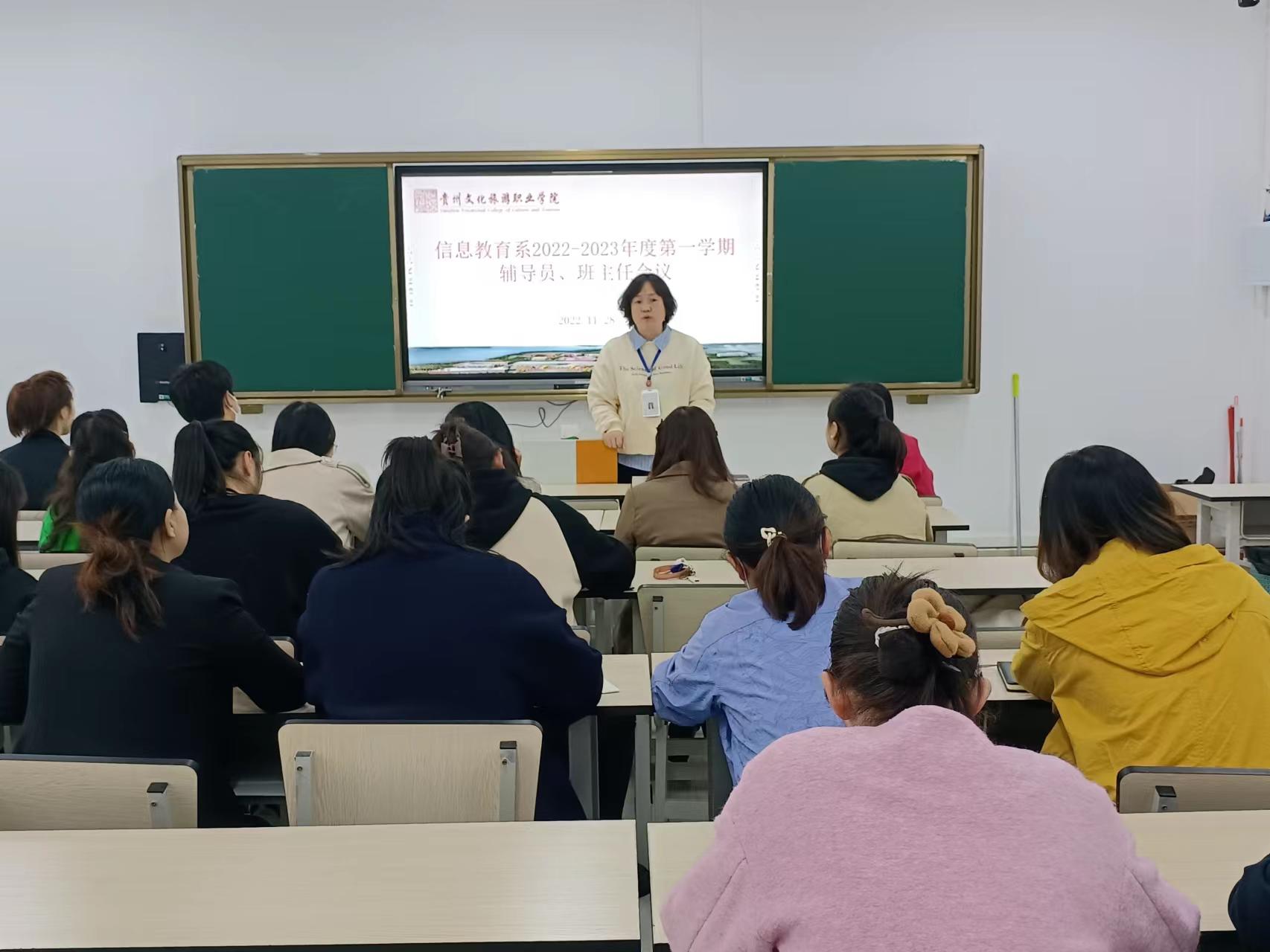 2022年11月29日,信息教育系召开2022-2023学年第一学期第三次辅导员、班主任会议,会议由信息教育系党支部负责人杨媛春主持,信息教育系21级班主任、22级辅导员参加。
