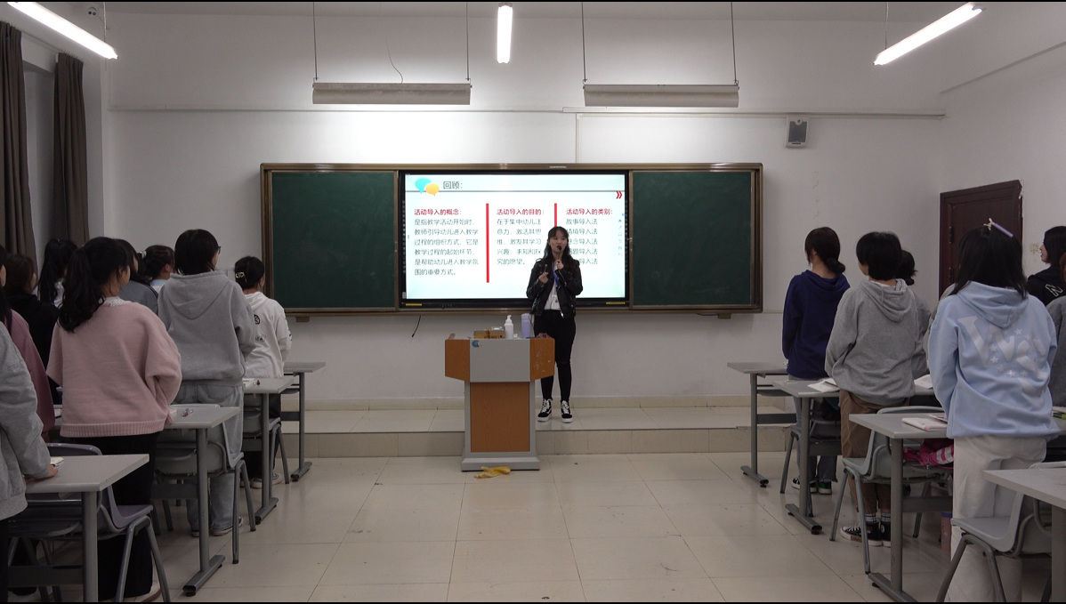 袁媛、林罗楠、王兴君、江成艳团队讲授《幼儿园教学活动导入方法——故事导入法》。 本次课程重点是了解故事导入法的概念和意义。本次课程难点是学会故事导入法的应用要点。本次课程教学目的是,使学生能掌握幼儿园教学活动的意义,采用适合的教学方法授课,熟悉教学活动的结构和各个环节:活动导入——活动展开——活动结束——活动延伸,熟悉活动导入环节运用的导入方法,逐步了解并掌握故事导入法的概念,意义和运用技巧,将导入方法运用在教学活动中,培养学生教学活动、教案撰写设计、语言表达等综合能力。