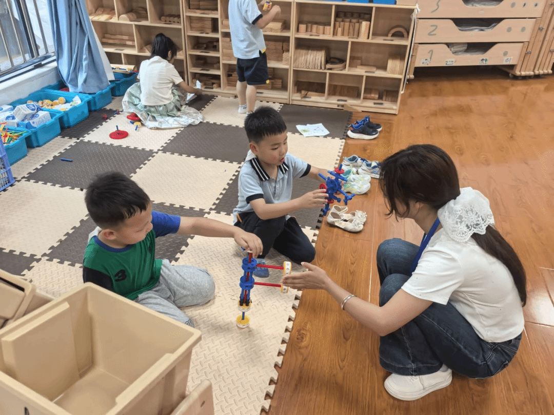 学生与幼儿一起搭积木