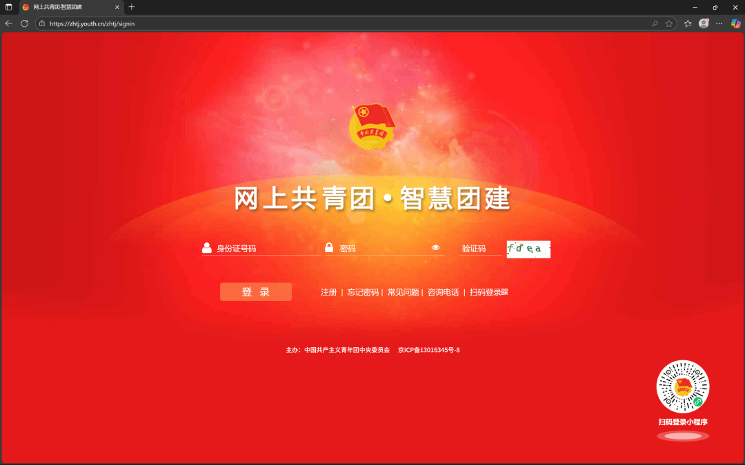 手机端微信小程序: 团中央智慧团建云平台(扫下方二 维码)