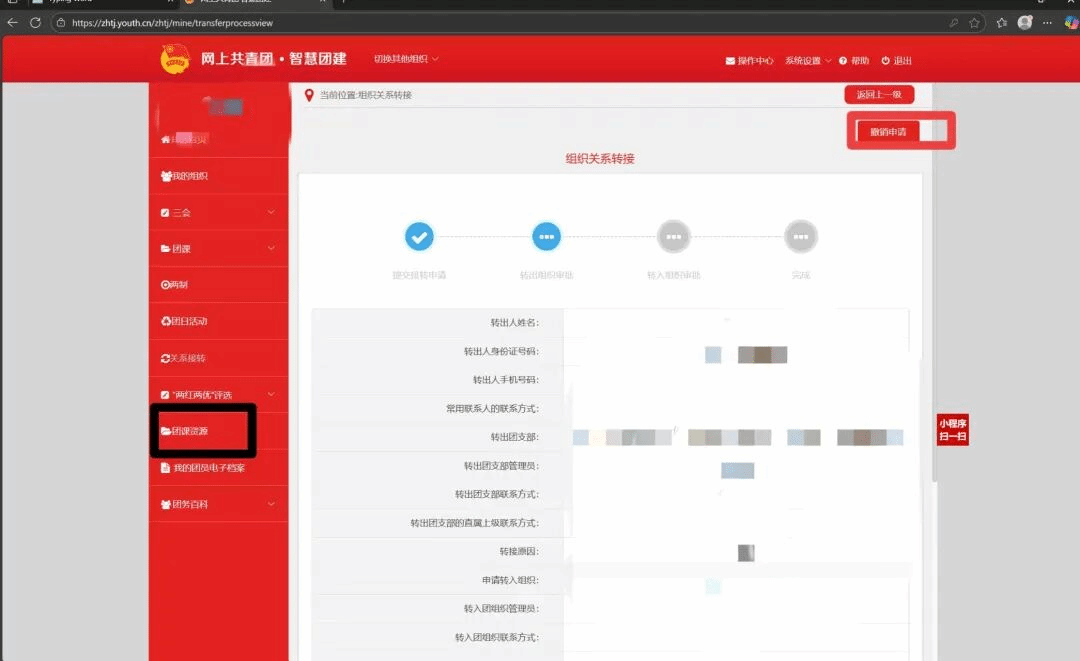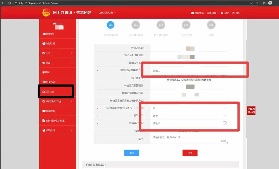 个人操作部分完成后 ,要持续关注转接进程。之后要是发现 “处理状态” 是 “转入团支部退回”,请重新确认填写的团支部是否有误。