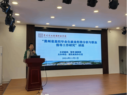 为深入贯彻落实党中央、国务院关于稳就业保就业的决策部署,进一步提升我院学生就业竞争力,更好地开展2025届毕业生就业创业工作,帮助学生更好地了解当前就业形势,明确职业规划,培养学生正确的就业观,11月1日,我院招生就业办公室在学院体育馆VR实训室举行就业指导专题培训。此次培训特邀请贵州省就业指导专家、贵州师范学院张坤副教授为师生做专项指导培训,学院党委委员、副院长李倩出席活动并致欢迎词,四系党支部辅导员和百余学生参加了此次活动。