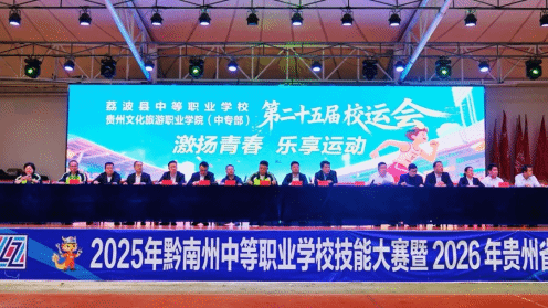 2026-04-09春潮涌动展风采 激情飞扬逐梦想——贵州文化旅游职业学院(中专部)荔波县中等职业学校 第二十五届运动会开幕4月8日上午,贵州文化旅游职业学院(中专部)荔波县中等职业学校、第二十五届运动会开幕式在学校足球场举行。荔波县教育工委委员、教育局副局长、荔波职校党总支部书记谭勇,党总支部副书记、校长郭楠,贵州文化旅游职业学院中专部副主任李淘参加此次开幕式。开幕式上,荔波县教育工委委员、教育局副局长,荔波职校党总支部书记谭勇宣布运动会正式开幕。荔波职校党总支部副书记、校长郭楠表示,校园运动会是学校深入落实“五育并举”...