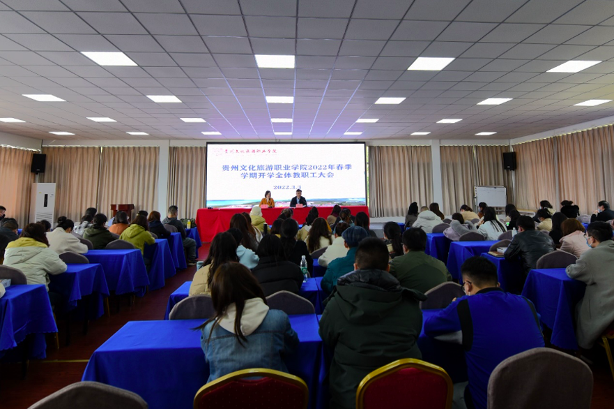 会上,陆勇昌传达了《国务院关于支持贵州在新时代大开发上闯新路的意见》(国发〔2022〕2号)文件精神,明确提出深刻把握文件精神,领会“促进文化产业和旅游产业繁荣发展”和“推动教育高质量发展”的内容要求,结合学院实际情况,紧抓当下利好契机进一步推动学院高质量发展。同时陆勇昌就新学期准备工作提出以下要求:一是大力推行二级系部改革,各部门(系部)要着力探索新型管理制度;二是牢固树立网络意识形态防护意识,在当前国际形势下,全体教职工要时刻绷紧网络意识形态安全防范意识;三是严格规范教育教学管理,广大教师要以教书育人为基本职责,狠抓教学质量关;四是落实疫情防控常态化,全院严格落实疫情防控工作要求,为学生安全返校做好准备;五是高度重视安全教育工作,安全教育无小事,要将疫情防控、食宿安全、反(防)电信诈骗等作为安全教育主要内容。
