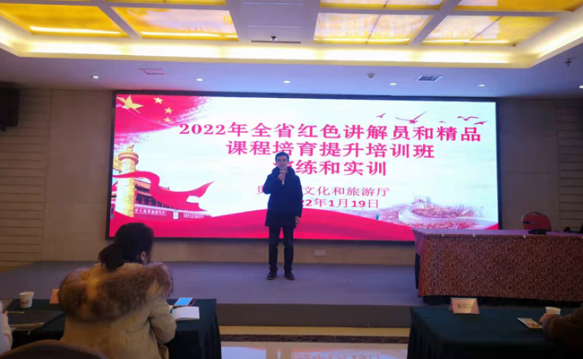 为进一步加强革命文物保护利用工作以及红色讲解员、精品课程开发人才队伍建设,1月17日至20日,由省文化和旅游厅主办的“2022年全省红色讲解员和精品课程培育提升培训班”在我院举办,来自各市(州)的优秀红色讲解员、精品课程开发学员60人参加培训。厅文物保护与考古处(革命文物处)处长丁凤鸣参加此次培训班开班仪式,并作开班授课。