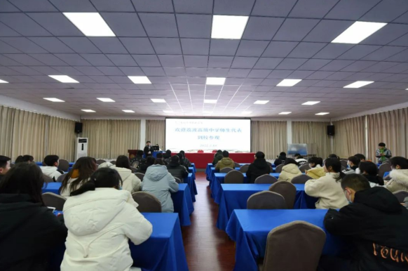 参观后,马煜焜在湖畔·佳苑二楼会议室代表学校热烈欢迎师生们的到来,并共同观看了学院招生宣传片。她勉励同学们要树立远大理想,扎实学习理论基础,增强自身素质,圆满完成学业,为将来到高等职业学校学习打下坚实基础。