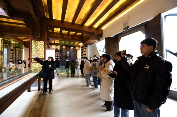 当天,我院老师带领荔波县高级中学师生一行参观了学院学义书院、部分实训室、体育馆及湖畔·佳苑实训酒店等。师生们驻足欣赏,了解学校发展历史、感受校园文化。