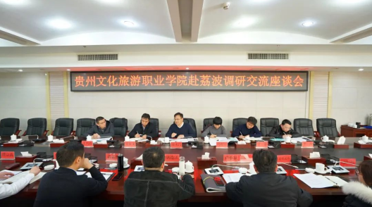 当天,双方在荔波县公共服务大楼301会议室开展交流座谈会。陆勇昌说明了此次调研的目的,并表示,希望通过此次调研促进两校开拓创新、协同发展,助推荔波职业教育发展,为职校学子搭建高职升学绿色通道,实现双方办学资源优势互补、合作共赢,为贵州文化旅游人才事业发展作出自己的贡献。