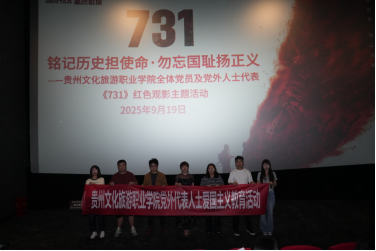 为深切缅怀革命先烈,弘扬伟大抗战精神,9月19日,学院组织“铭记历史担使命·勿忘国耻扬正义”贵州文化旅游职业学院全体党员及党外代表人士《731》红色观影主题活动。