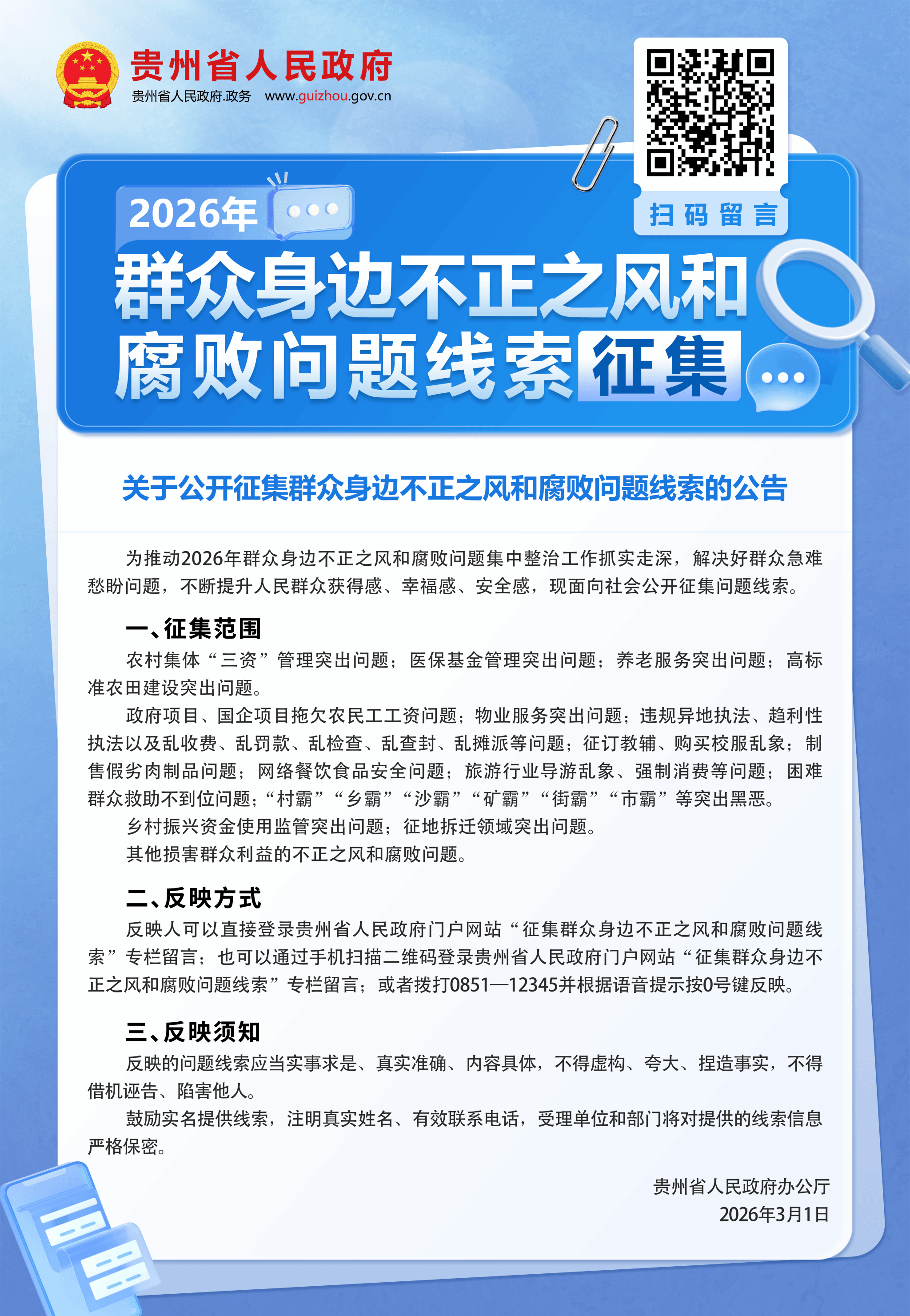 2026年关于公开征集群众身边不正之风和腐败问题线索的公告