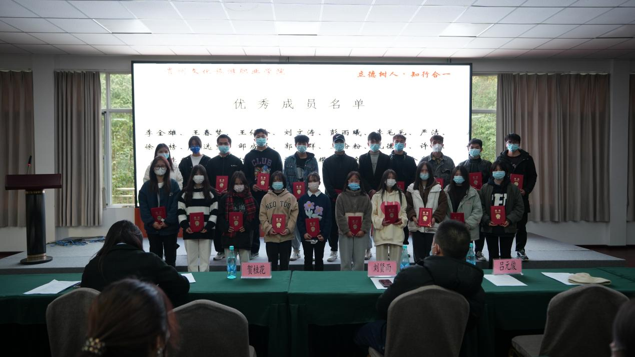 旅游管理系党支部贺桂花为“优秀成员”颁发荣誉证书