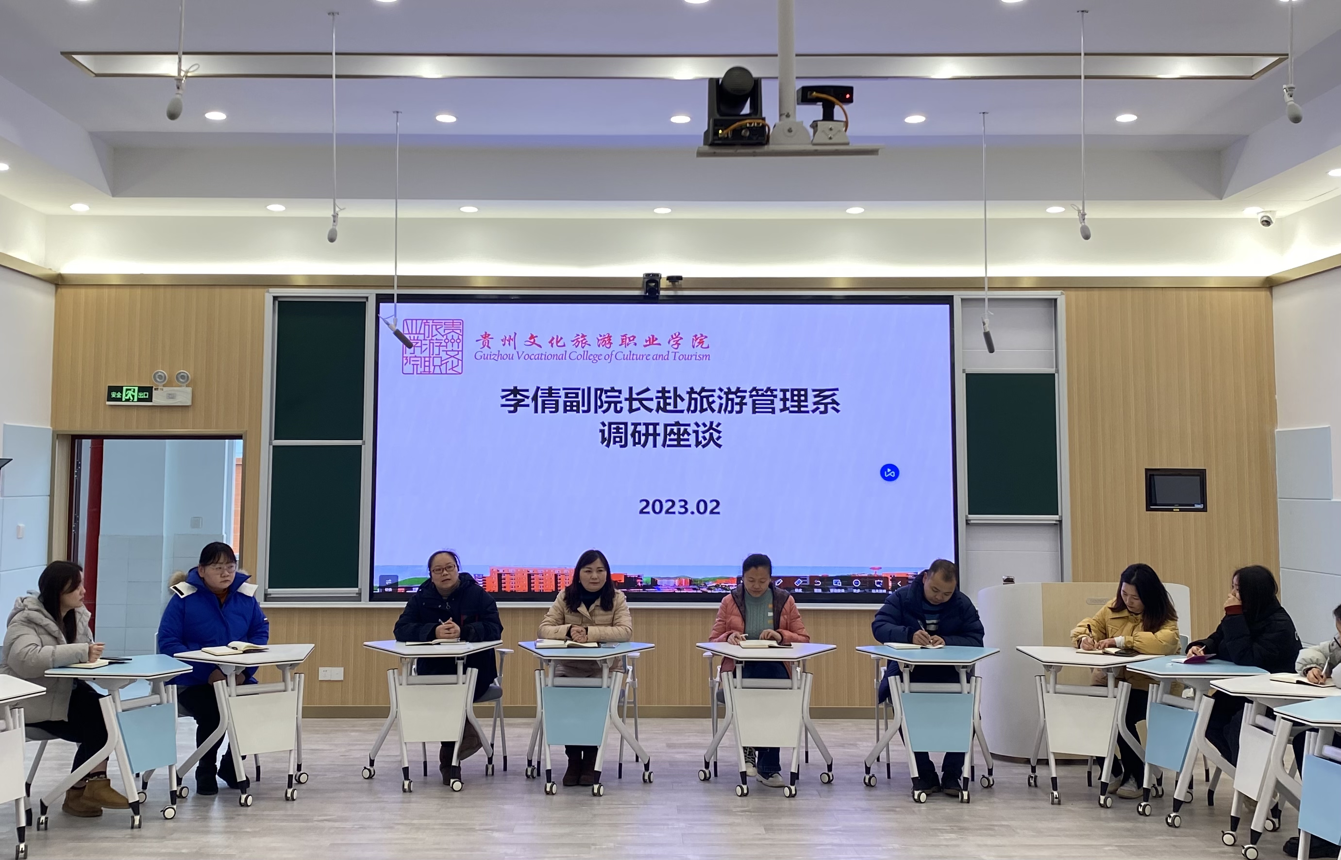 2023年2月20日上午,李倩副院长一行赴旅游管理系开展调研座谈,学院组织(人事、教师工作部)负责人臧诗茜、教务科负责人糜玉莲、教务科负责人吴华杰、旅游管理系负责人钟磊及旅游管理系全体授课教师参会。