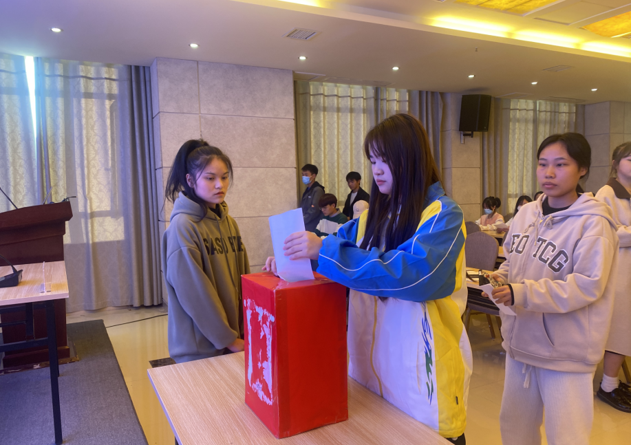 大会审议通过李林艳作为监票人,董天慧、申秋兰作为计票人。主持人宣读选举注意事项后,发放选票,正式选举。