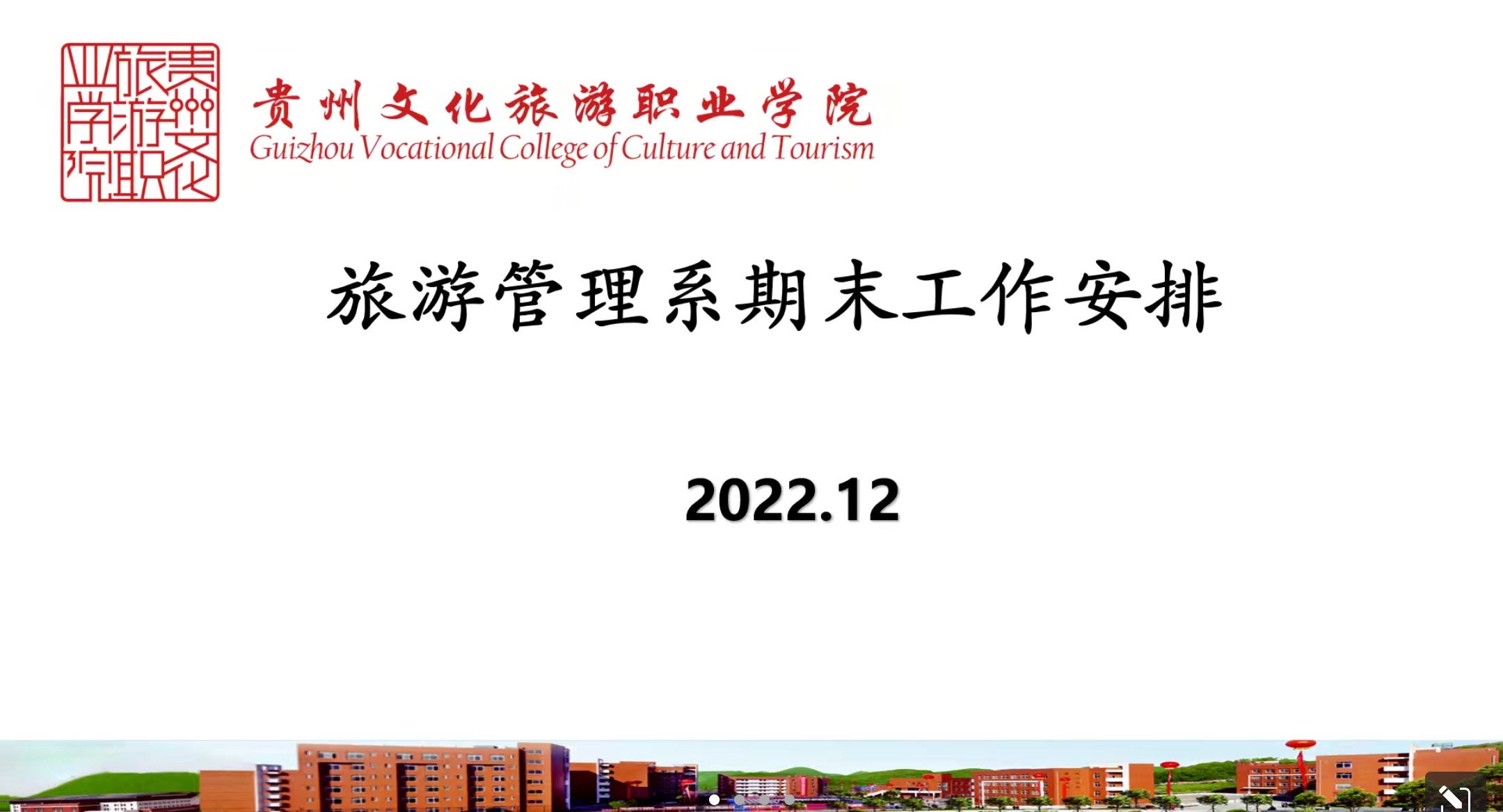 2022年12月12日,旅游管理系在腾讯会议召开期末工作会议,会议由旅游管理系负责人钟磊主持,旅游管理系所有授课教师参加。