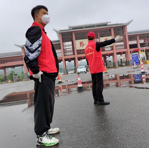 9月2日贵阳疫情突发并带有外溢风险,家住黔西县21级酒店管理与数字化运营1班的龙荣开同学,随即报名加入到志愿者队伍中。黔西市与贵阳市修文县、清镇市接壤,受到疫情外溢带来的压力,龙荣开同学被分配到黔西北收费站开展志愿服务工作,主要工作任务是配合疫情防控工作人员对进入黔西市车辆与人员进行安全排查和健康码及体温检查,防止疫情传播。在各卡点卡口设置醒目标志,在车流人流较大的卡点卡口增加核酸检测台,并且按照24小时轮流值班制度进行值守。