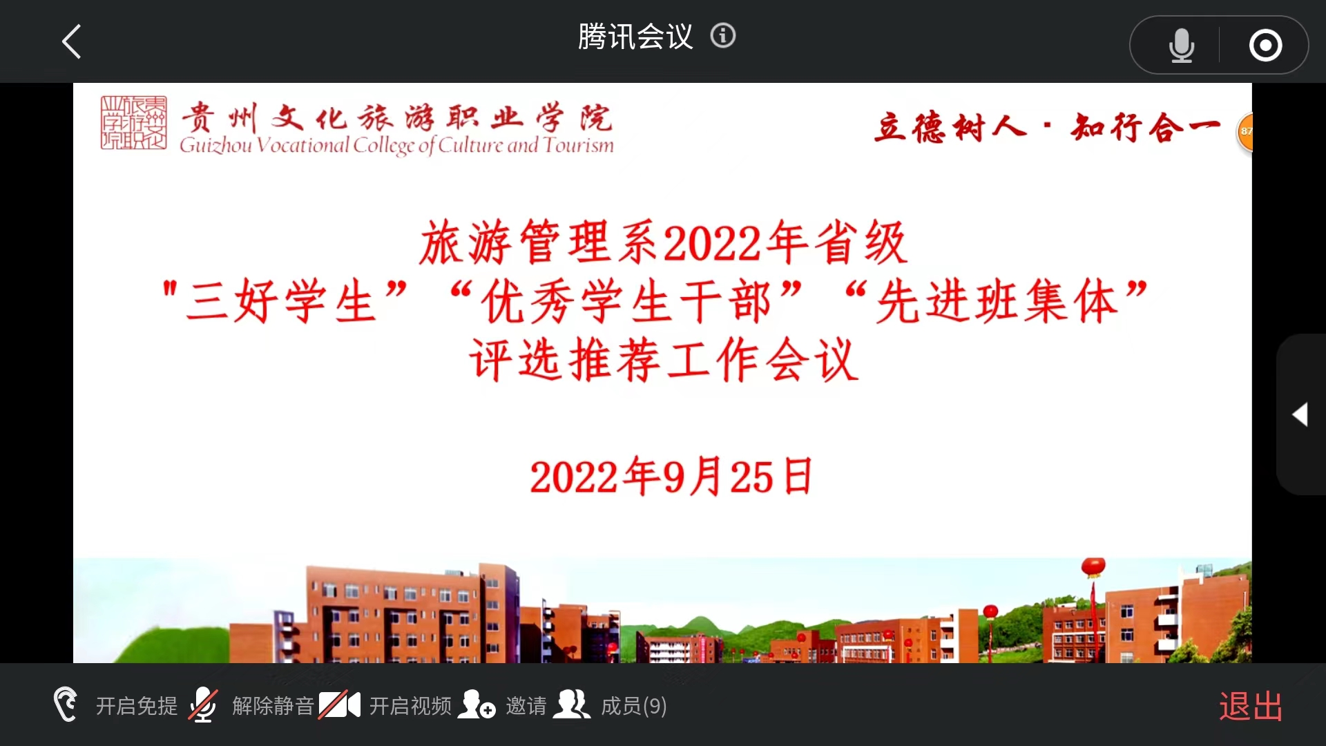 按照省教育印发的《贵州省普通高等学校三好学生、优秀学生干部、优秀毕业生、先进班集体评选办法》的要求,我系党支部于2022年9月25日上午10:00通过腾讯会议召开了我系2022年省级“三好学生”、“优秀班干部”和“先进班集体”评优推荐工作会议。会议由陈乐老师主持,我系团总支负责老师,学生工作负责老师,资助负责老师相继发表意见。从思想建设、学业成绩、学生活动等方面综合评判后。最终,拟推荐到学院参评省级“三好学生”2人:董天慧、韦杰;“优秀班干部”1人:欧阳婷;“先进班集体”1个:2021级烹饪工艺与营养1班。