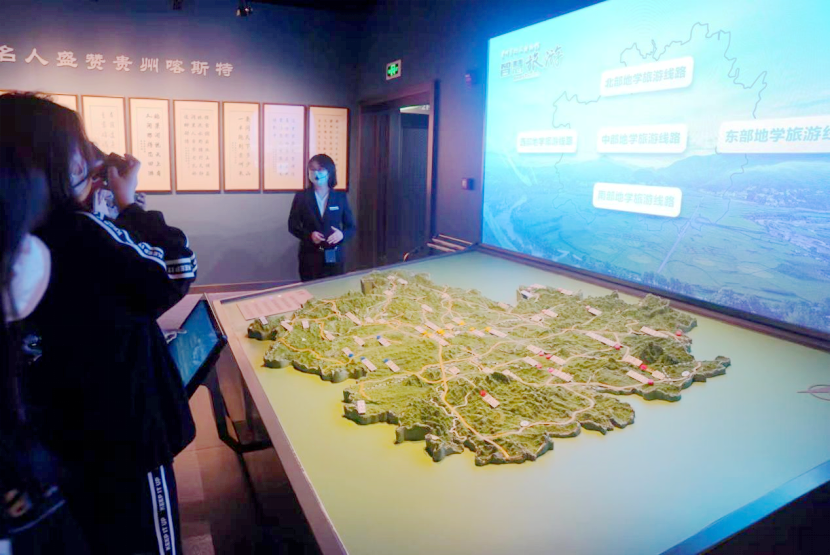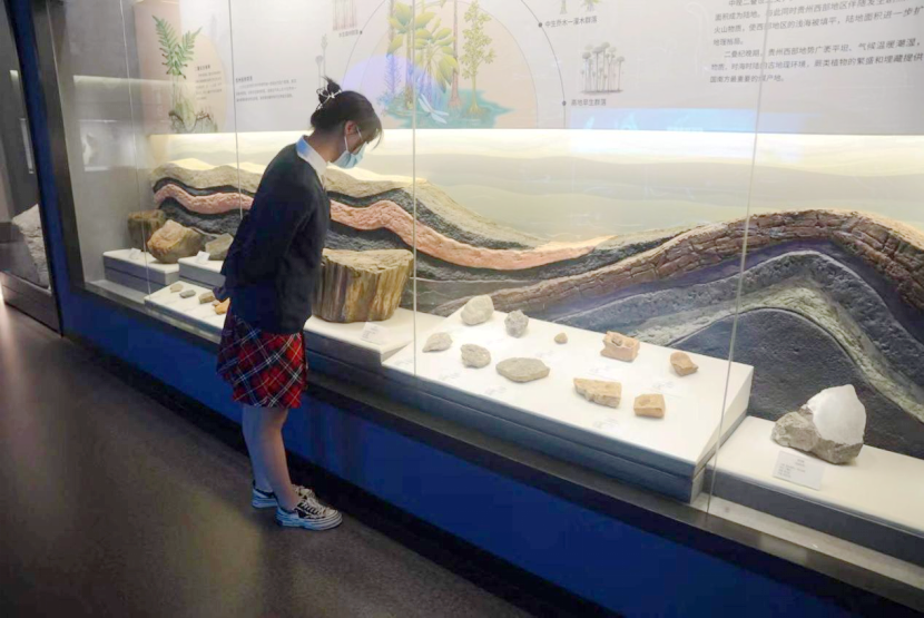 在地质博物馆内,同学们亲眼见到了海百合化石、胡氏贵州龙等典型的古生物化石群标本,通过地层复制、图文展板等多种方式学习了贵州的地质史及古生物史,通过场景复原及声光电技术“穿越”了溶洞、峡谷等独特的喀斯特地质景观,还通过数量庞大的文化物件和史实材料,学习了贵州广大地质地勘和自然资源工作者不畏艰辛、奋力拼搏、改革创新的精神。