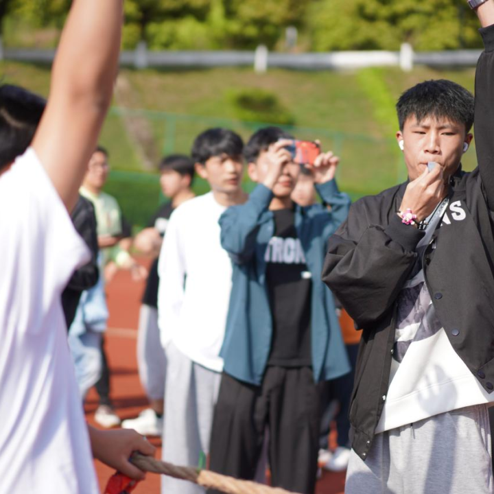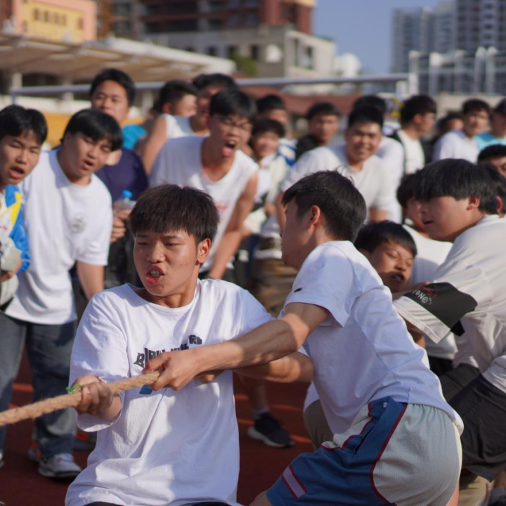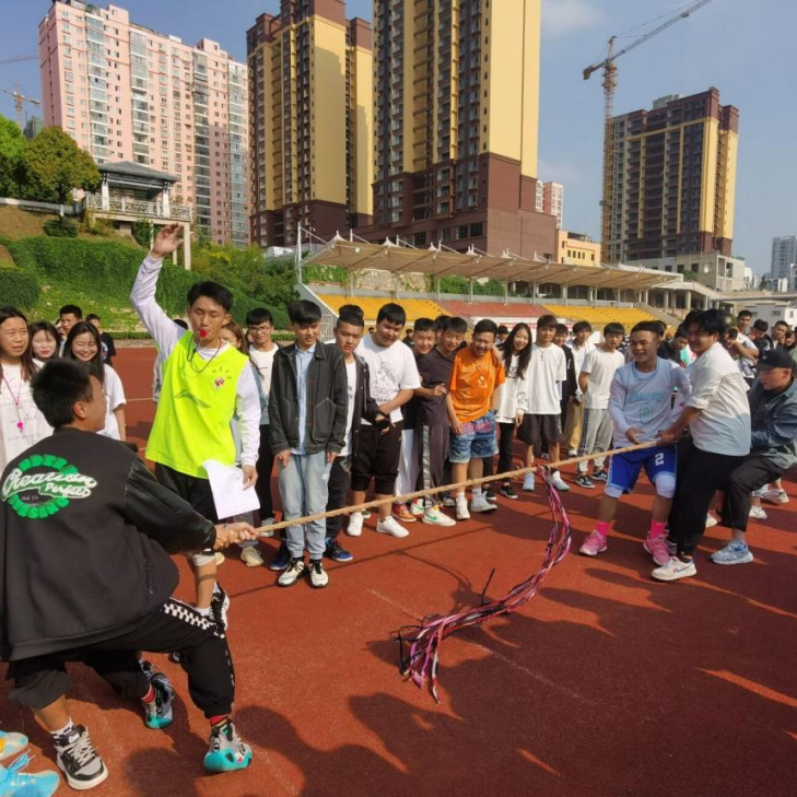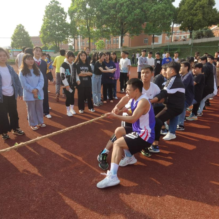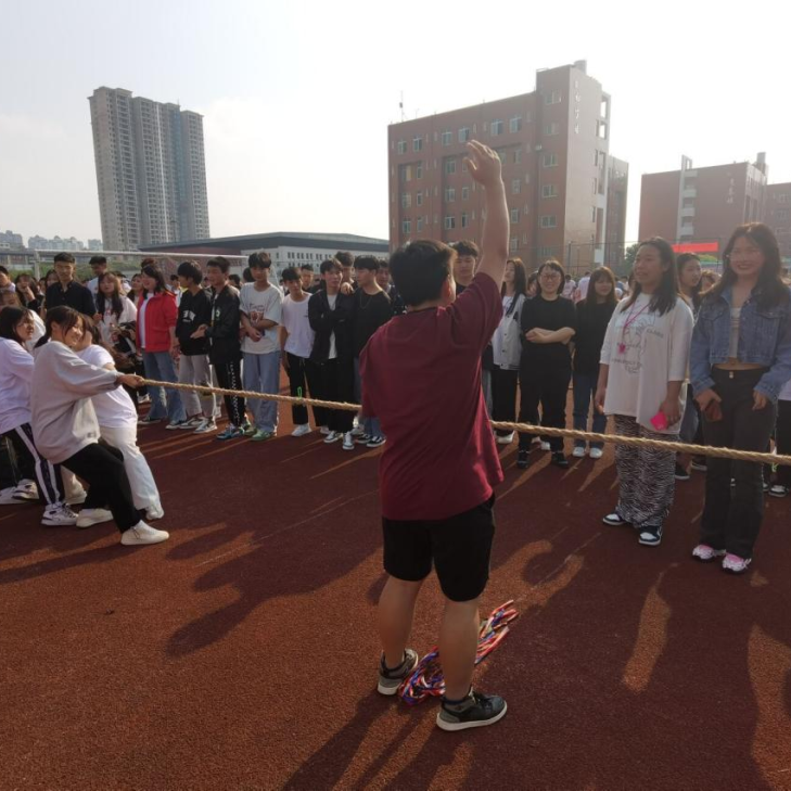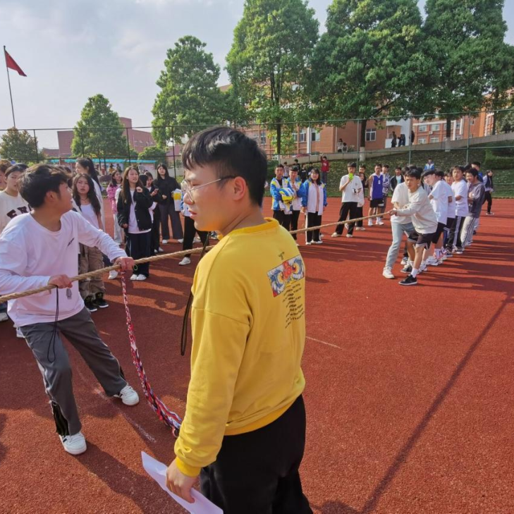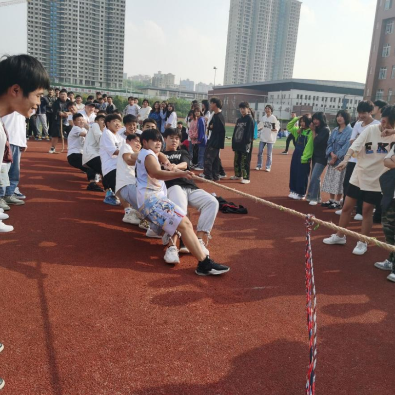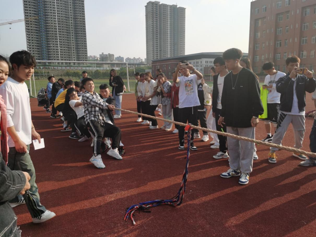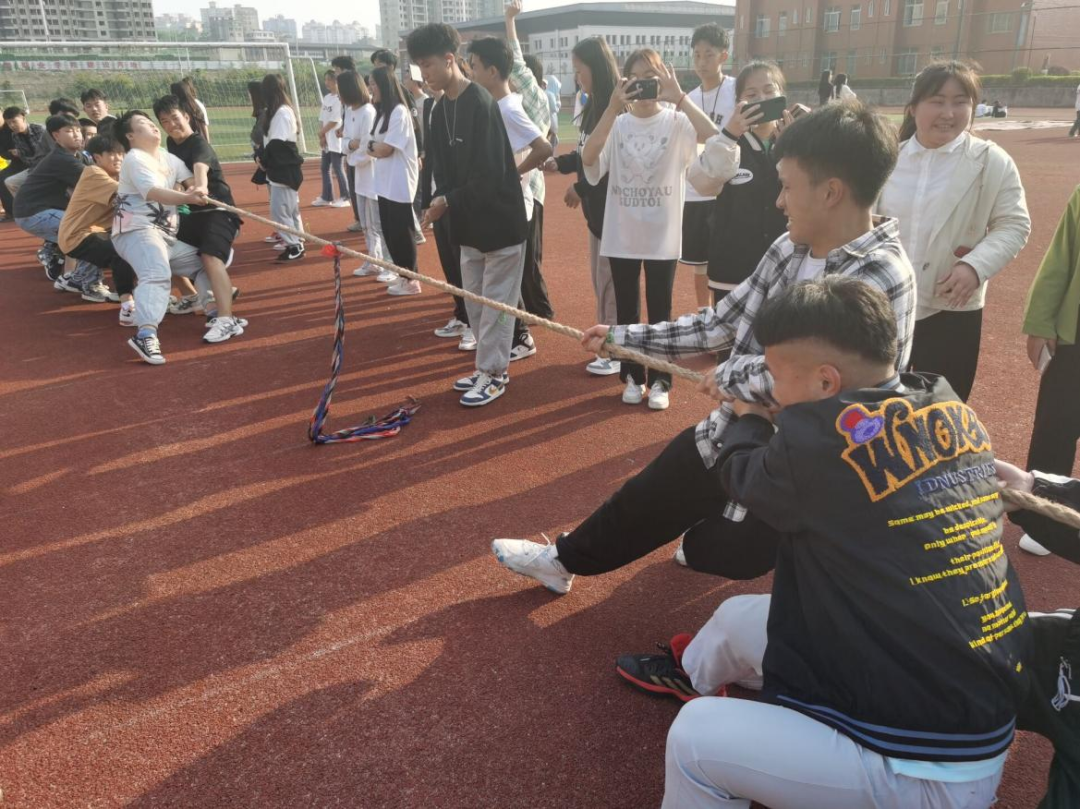 赛场上一声哨响,参赛队员们有的身体后仰,手握长绳,团结一致,一起发力,铆足劲往后拉。啦啦队员们呐喊助威,鼓舞士气。同学们热情高涨,助威声此起彼伏。在疫情防控期间,同学们保持着积极向上的生活态度,展现着青春的活力。