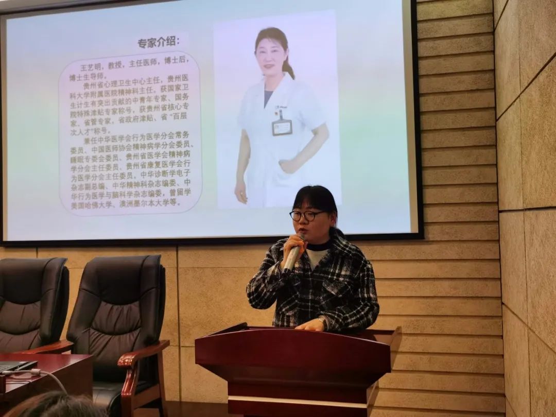 为普及心理健康知识,进一步做好青少年的心理健康教育工作,3月28日晚,学院旅游管理系邀请贵州省心理卫生中心主任、贵州医科大学附属医院精神科主任、国务院特殊津贴专家称号,省管专家,省政府津贴、省“百层次人才”称号王艺明教授在学义书院举办了主题为“青少年情绪障碍及调适”的心理健康讲座。讲座由旅游管理系主任钟磊老师主持,旅游管理系党支部负责人金竺及部分师生代表现场参与讲座,其余师生通过线上形式参与到此次讲座。
