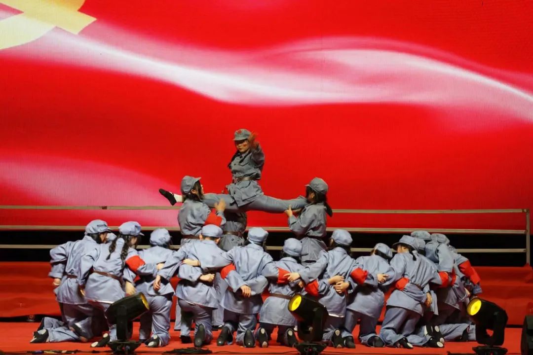 红歌献给党,声声赞祖国。比赛现场,歌声婉转悠扬,同学们伴着旋律,挥动红旗,高声歌唱,用坚毅的眼神,真诚的微笑,歌颂了党的丰功伟绩。